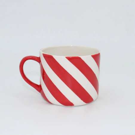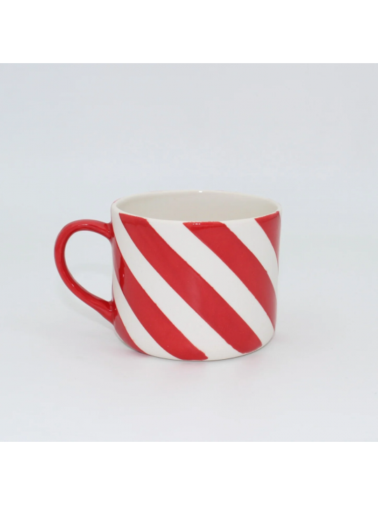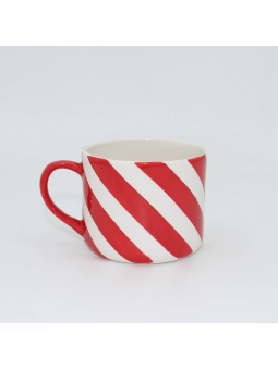 Luna Beyaz Kırmızı Çizgili Porselen Kupa