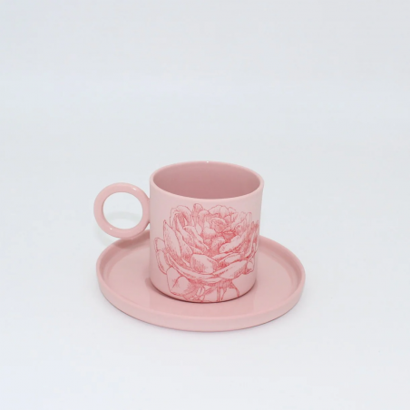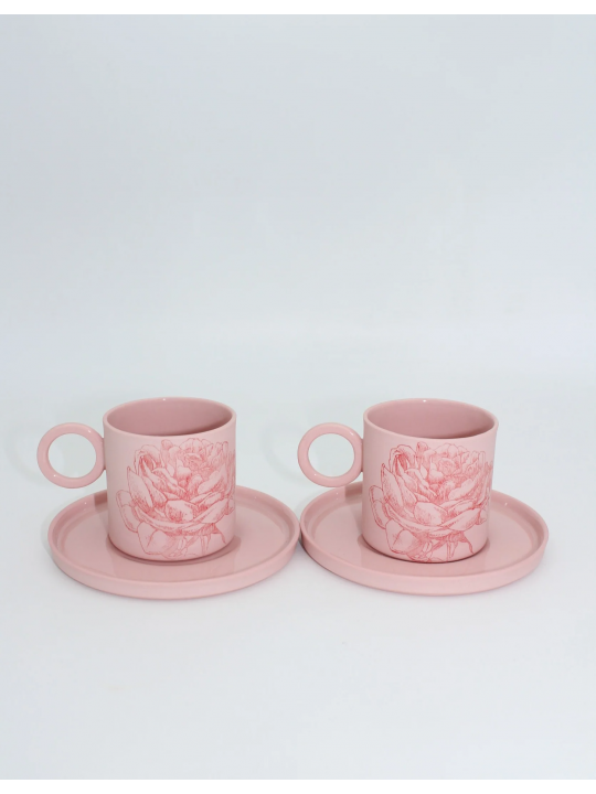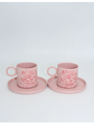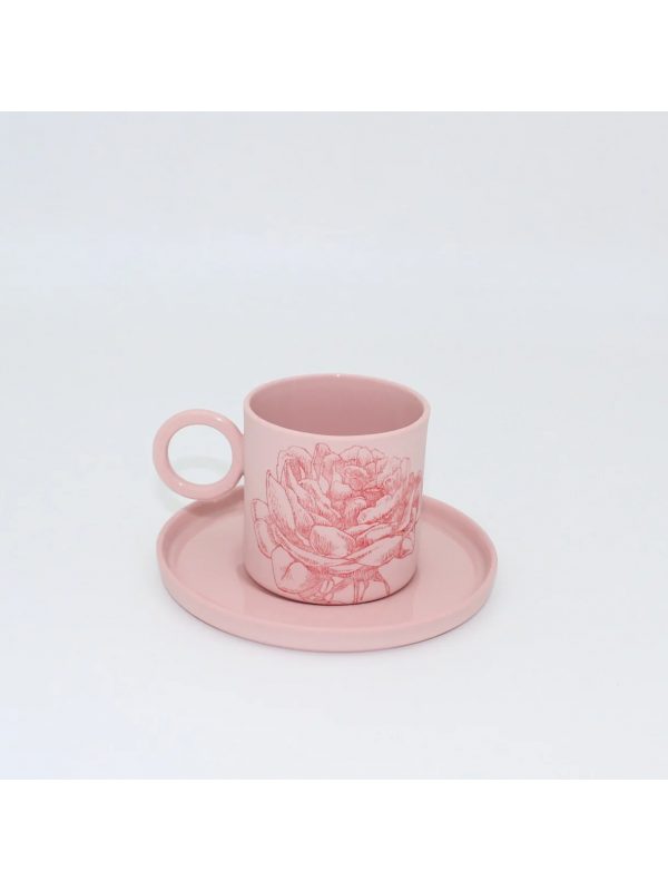 Mia Pembe Kırmızı Çiçekli Porselen Fincan ve Tabağı